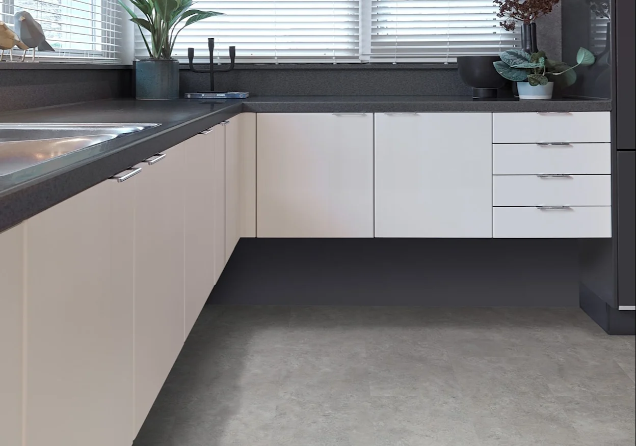 Met een vinylvloer in terrazzo-look en gekleurde keukenkastjes geef je je keuken direct een opvallende en persoonlijke twist. Zo wordt je keuken een echte eyecatcher.