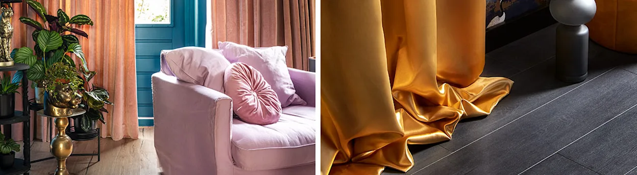 Met velours gordijnen zorg je voor een luxe hotelgevoel in je eigen huis. Ze voegen een flinke dosis sfeer en warmte toe aan een ruimte. Dit komt door de rijke uitstraling, de zachte stof en de intense kleuren. Dat laatste komt doordat verf heel goed pakt op natuurlijke vezels zoals katoen (dat ook in velours zit).