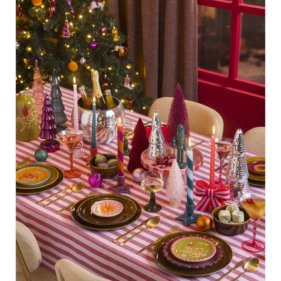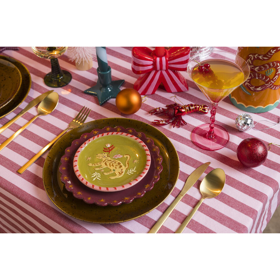 Een metalen bestekset in goudkleur. 16-delig. Geschikt voor vaatwasser.
