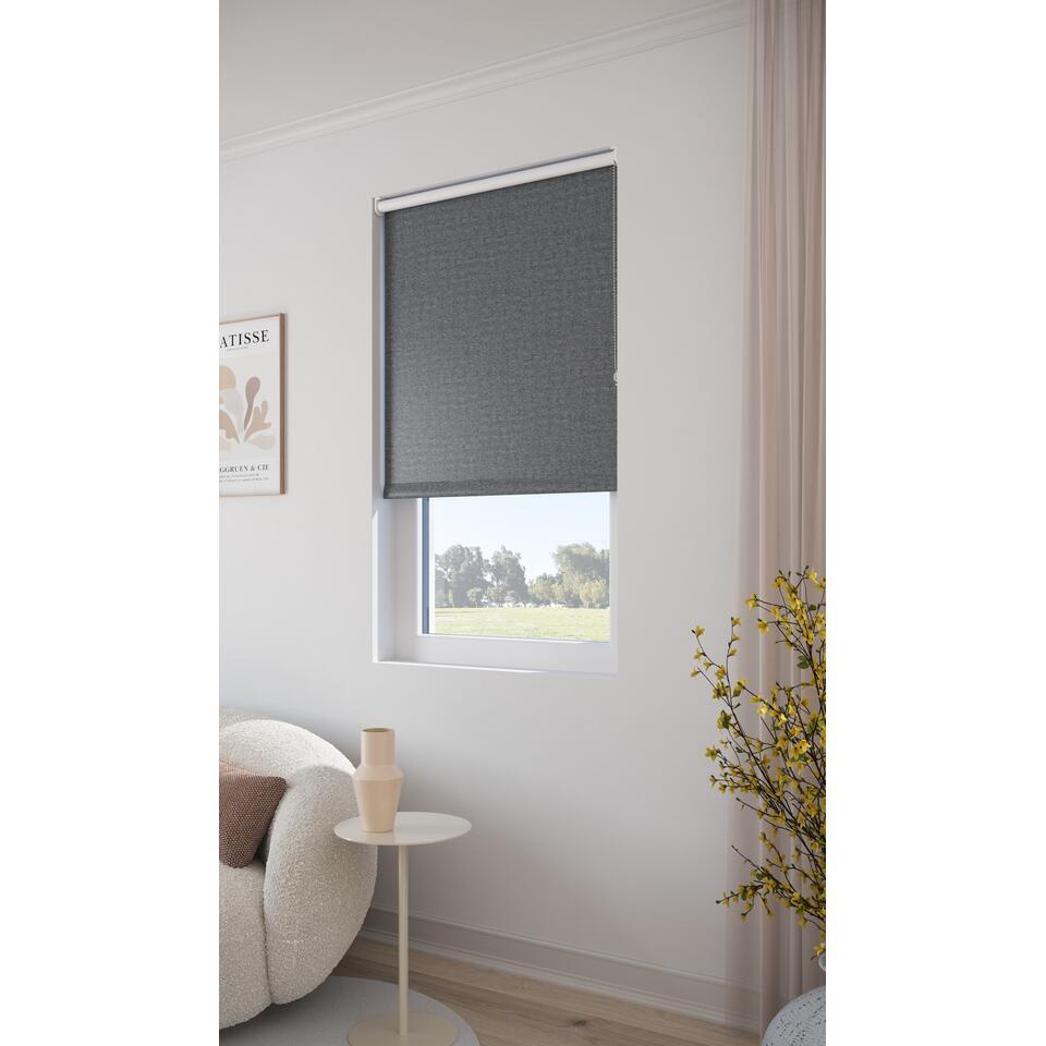 Verduisterend rolgordijn grijs gemêleerd met structuur. De witte achterzijde zorgt voor volledige verduistering. Ideaal voor slaapkamers maar ook te gebruiken voor keukens en andere woonruimtes. Op maat te maken en volledig naar wens samen te stellen met een ruime keuze uit accessoires en uitvoeringen. Elektrische bediening en zijgeleiding is mogelijk. Ook geschikt voor draaikiepramen. Eenvoudig met een vochtige doek af te nemen.
