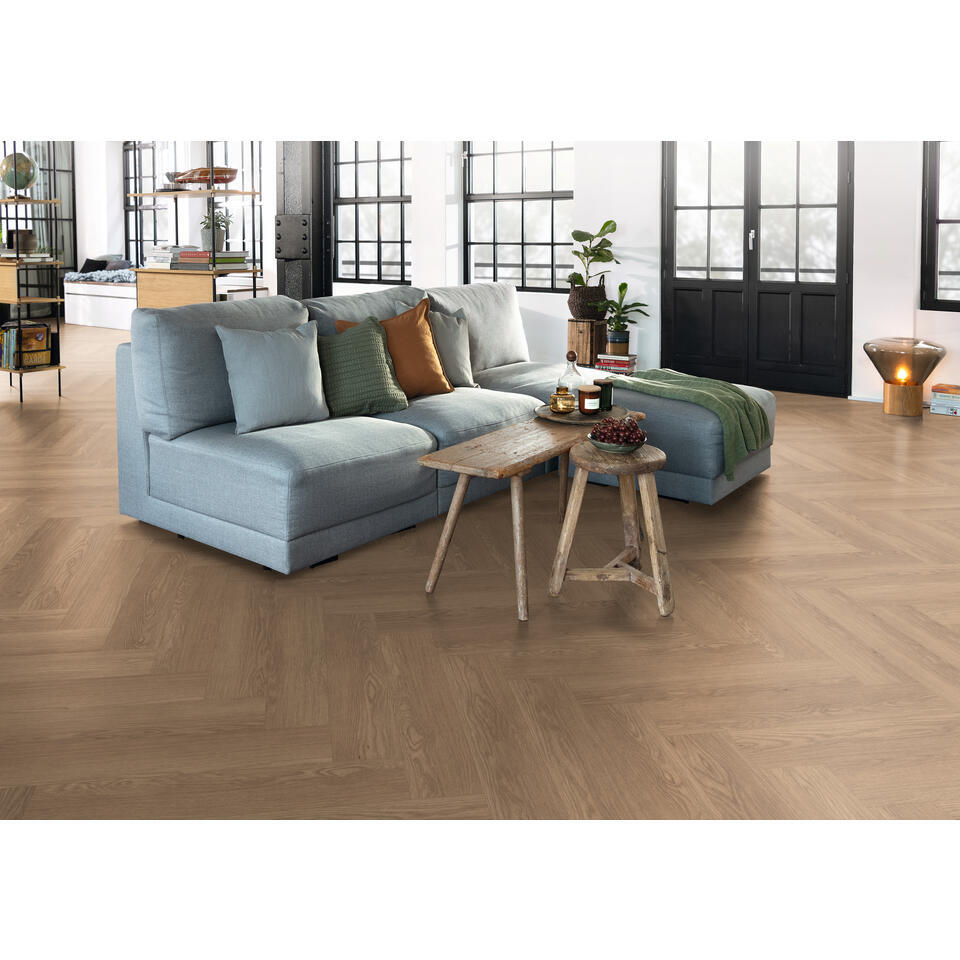 Laminaat Aders is een bruine eiken vloer die veel karakter en een natuurlijke uitstraling aan je ruimte geeft. Door het visgraat dessin geeft hij veel sfeer in je woonruimte en past hij in eigentijdse woningen. Hij is perfect te combineren met diverse interieurstijlen. Aders heeft een v-groef aan de korte en lange zijdes. Zo is hij gemakkelijk te leggen en sluit hij mooi aan.
