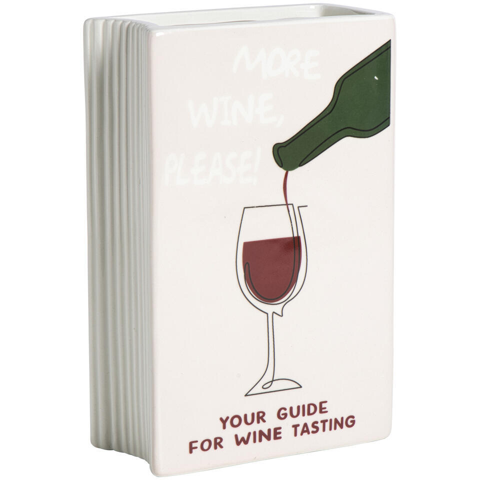 Deze bijzondere vaas in de vorm van een boek met de tekst Wine erop geeft een modern en sfeervol accent aan ieder interieur. De rechthoekige roze vaas, gemaakt van steen (dolomiet), combineert stijl en originaliteit. Gebruik de vaas met (kunst)bloemen als blikvanger of decoratief object en geniet van een eigentijdse en gezellige uitstraling.
